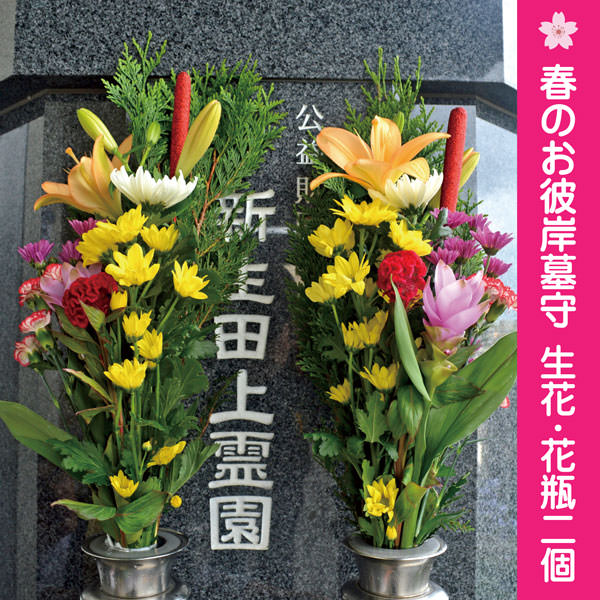 春のお彼岸 生花(花瓶1対/外墓地向け) ¥5,500 (税込)