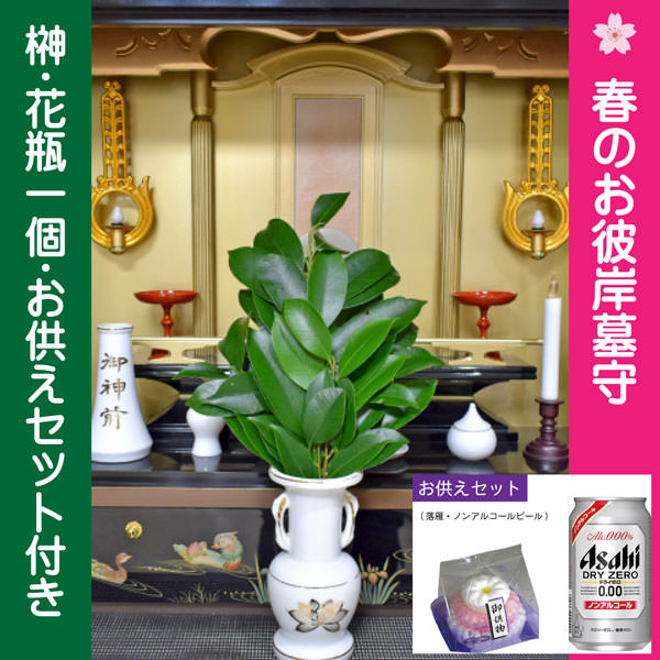 春のお彼岸 榊・お供えセット付き(花瓶1個/納骨壇・屋外納骨壇・樹木葬向け) ¥2,200 (税込)