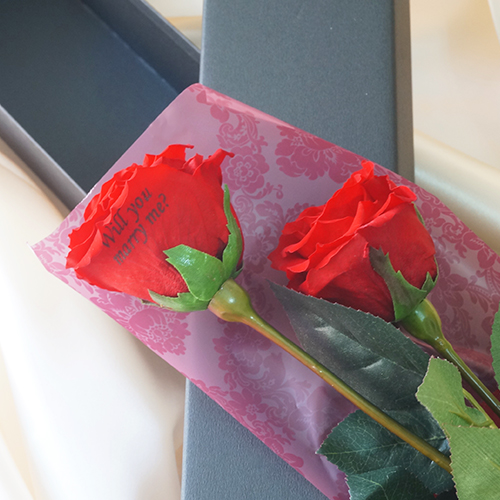 メッセージローズは、「バラ一輪」と「シンデレラの靴」どちらをご希望ですか?