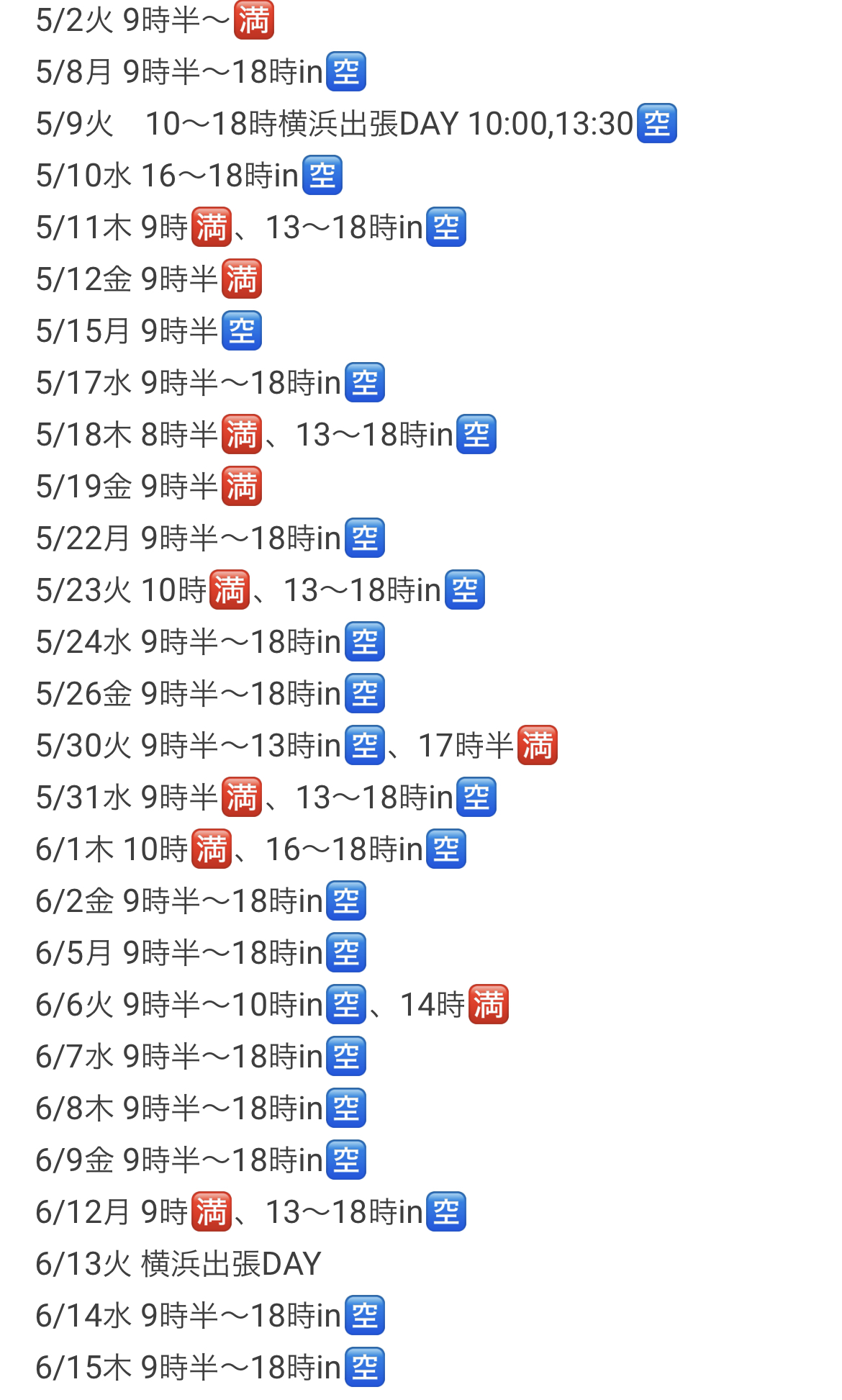 詳しい最新のご予約状況