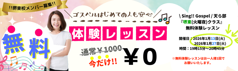 1月27日(火)【天ら部】ゴスペル無料体験レッスン