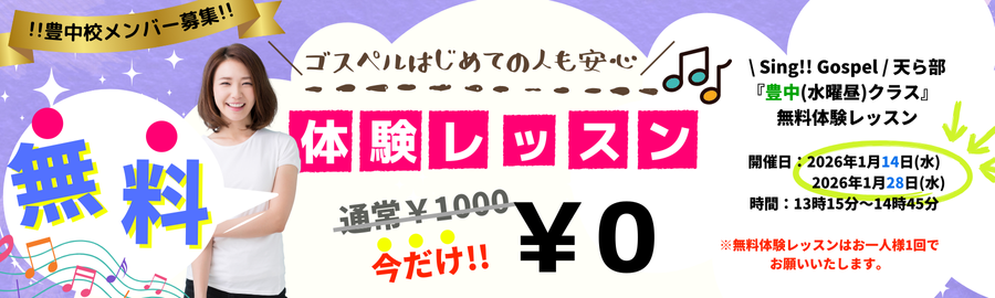 1月28日(水昼)【天ら部】ゴスペル無料体験レッスン