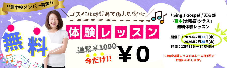 2月3日(火)【天ら部】ゴスペル無料体験レッスン