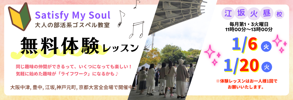 1月24日(土)大人のゴスペル無料体験レッスン【大阪中津】