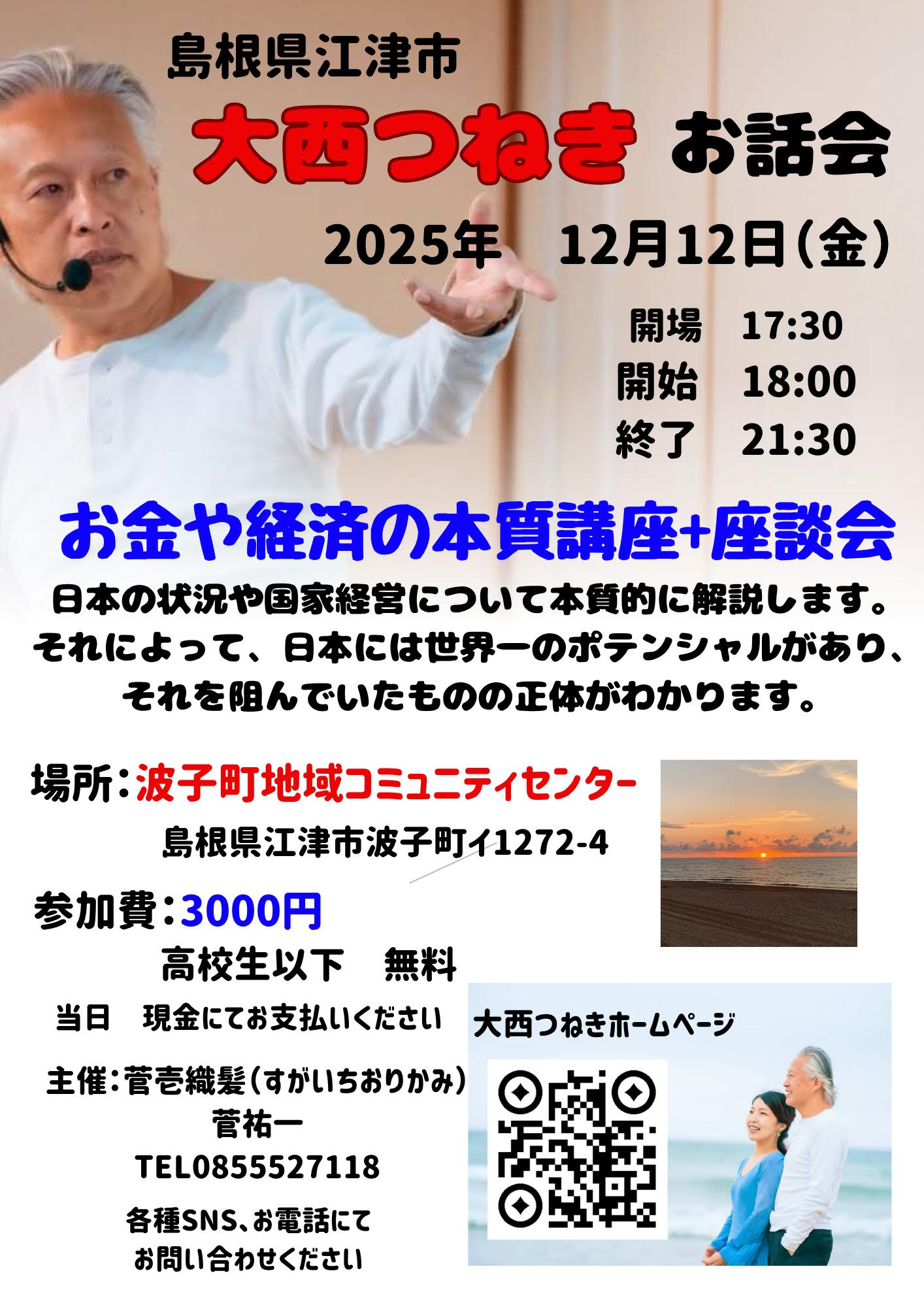 お金や経済の本質講座+座談会〜日本の状況や国家経営について