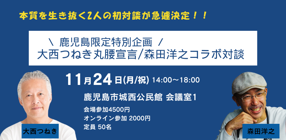 \鹿児島限定特別企画/ 大西つねき&森田洋之コラボ対談(オンライン配信専用申し込みページ)