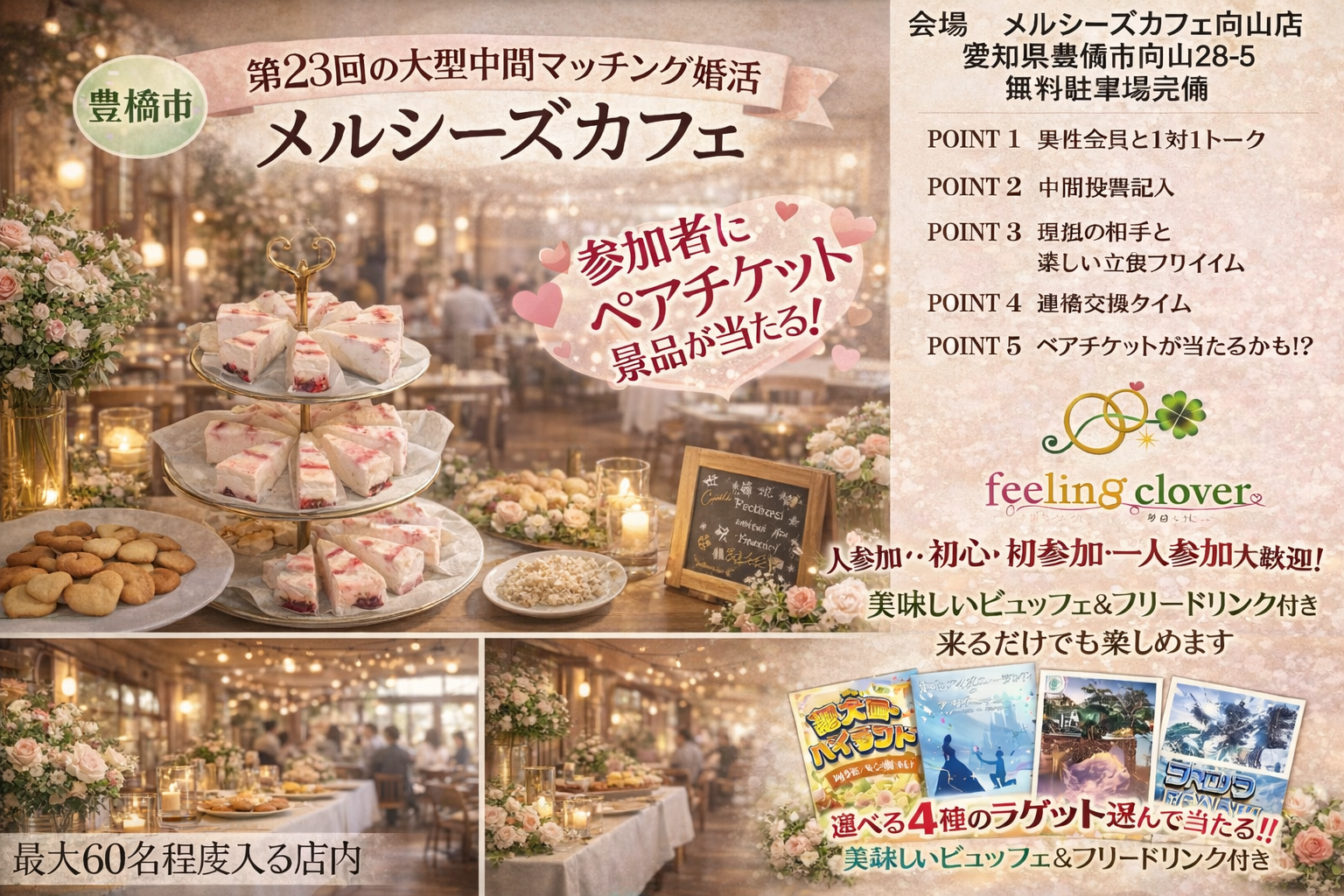 【約15名申込】女性急募 第23回 景品も当たるメルシーズカフェ婚活 31歳位〜48歳