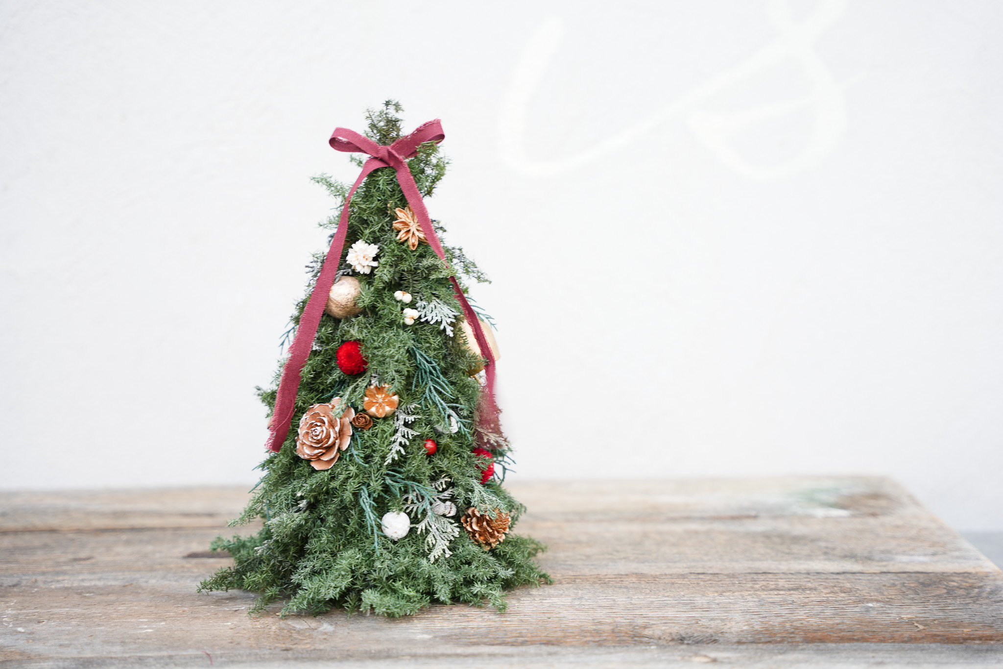 プリザーブド加工の針葉樹を使ってツリーを作った後は