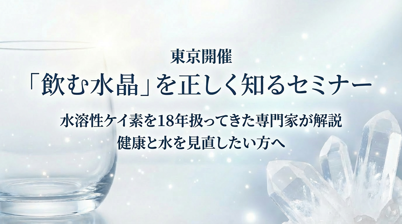 10/18【東京開催】飲む水晶を正しく知るセミナー 〜水溶性ケイ素18年の専門家が解説〜