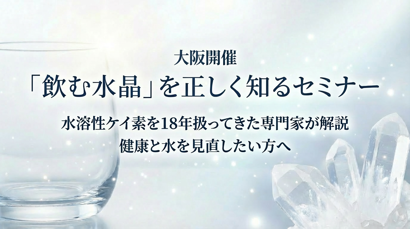 9/27【大阪開催】飲む水晶を正しく知るセミナー 〜水溶性ケイ素18年の専門家が解説〜