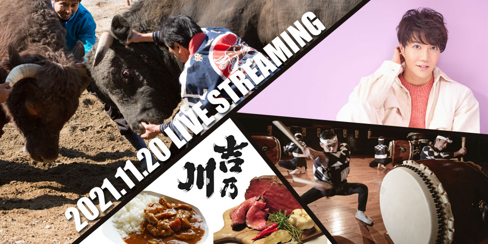 山古志の闘牛を見て、味でも山古志産牛肉を使ったグルメを堪能!会場には大人気歌手の中澤卓也さんゲストとして登場!トークあり、歌ありで出演します。またこの他に、佐渡を拠点に活動する太鼓芸能集団「鼓童」も佐渡からZOOMにて参加です。