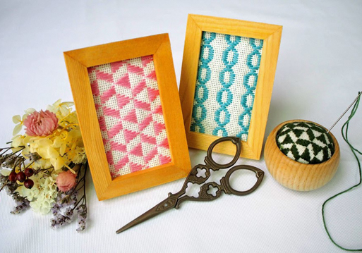 「こぎん刺し」とは青森県津軽地方に伝わる伝統工芸です。先の丸い針に好きな色の糸を通して、布の目を数えながらチクチクすると…素敵な模様が浮き上がってきます。昔から伝わる伝統の模様は、最近流行している北欧柄にも似ていて、和・洋どちらのインテリアにもピッタリです!お好きな色と模様の組み合わせで、自分だけの作品を作ってみてください。