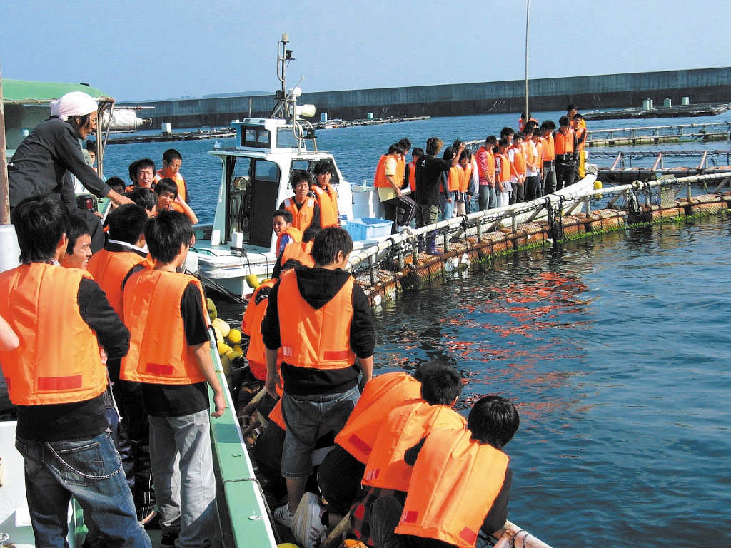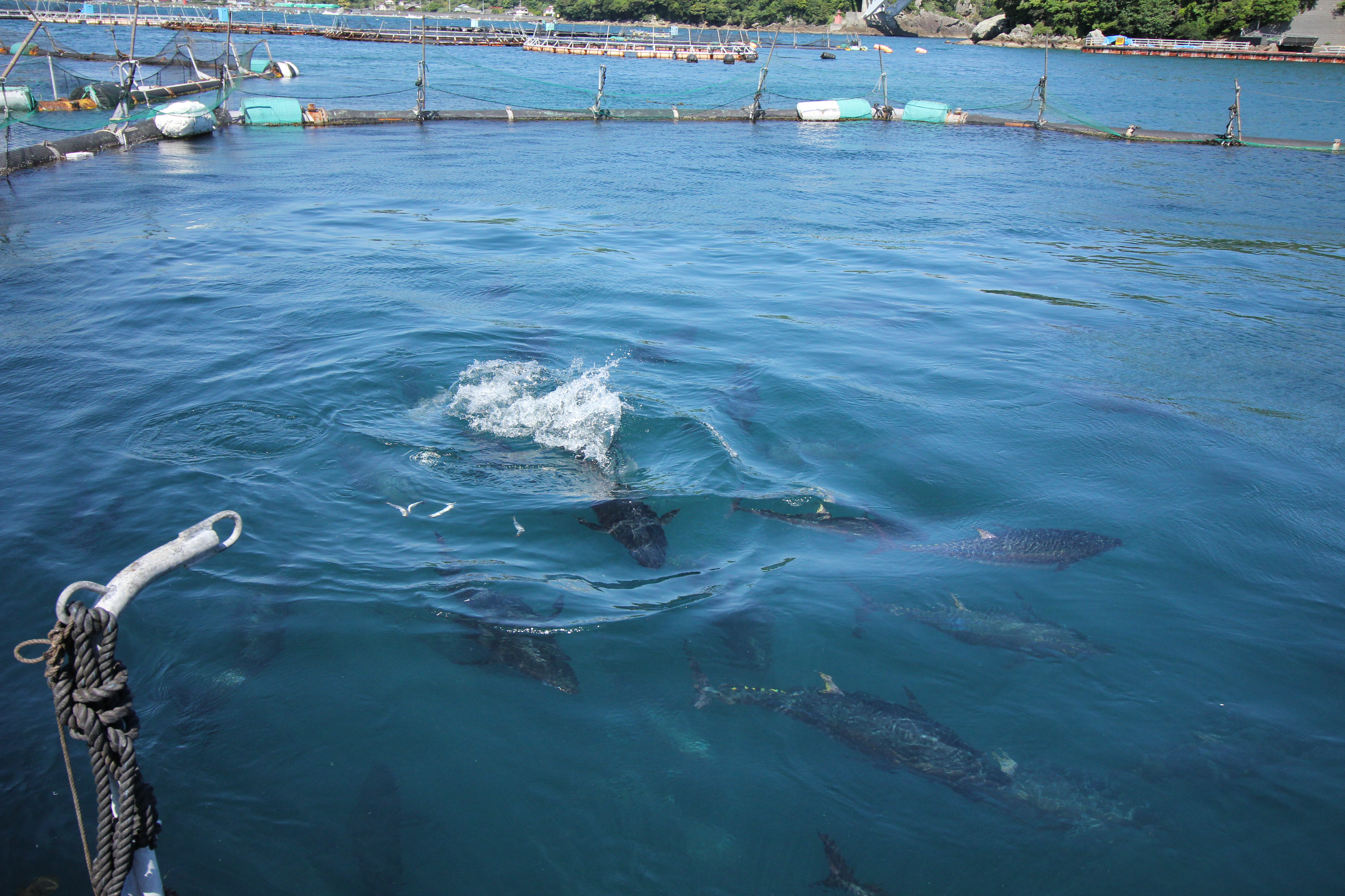 巨大マグロの迫力ある餌やり体験のあとは、鮮度抜群の本マグロを試食。