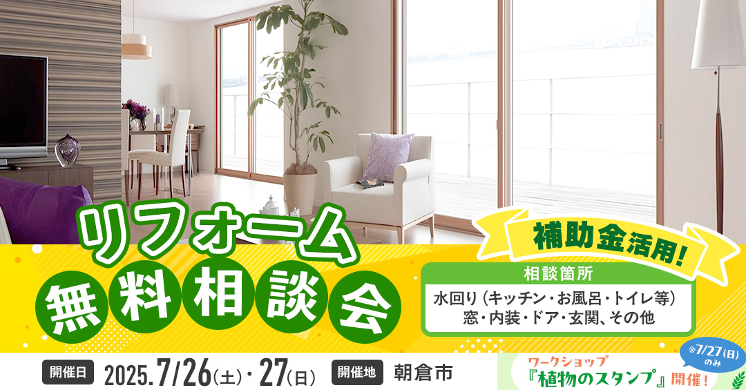 「先進的窓リノベ2025事業」と「子育てグリーン住宅支援事業」でお得にリフォーム相談会開催!