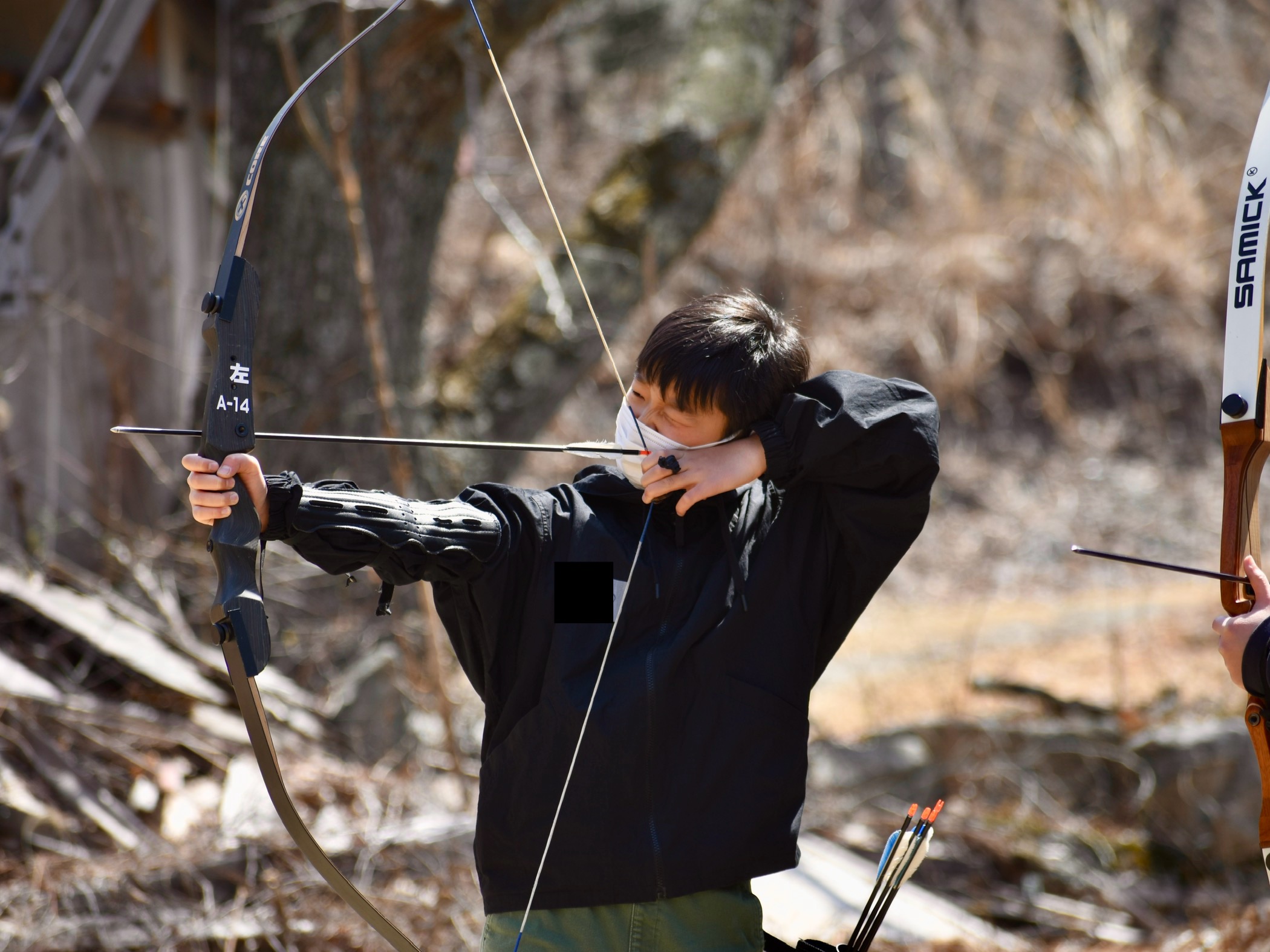 森の中でハンティング気分を満喫しよう。練習場で道具の使い方を確認し試し打ちをしたら、いざ森の中のフィールドにでかけよう。