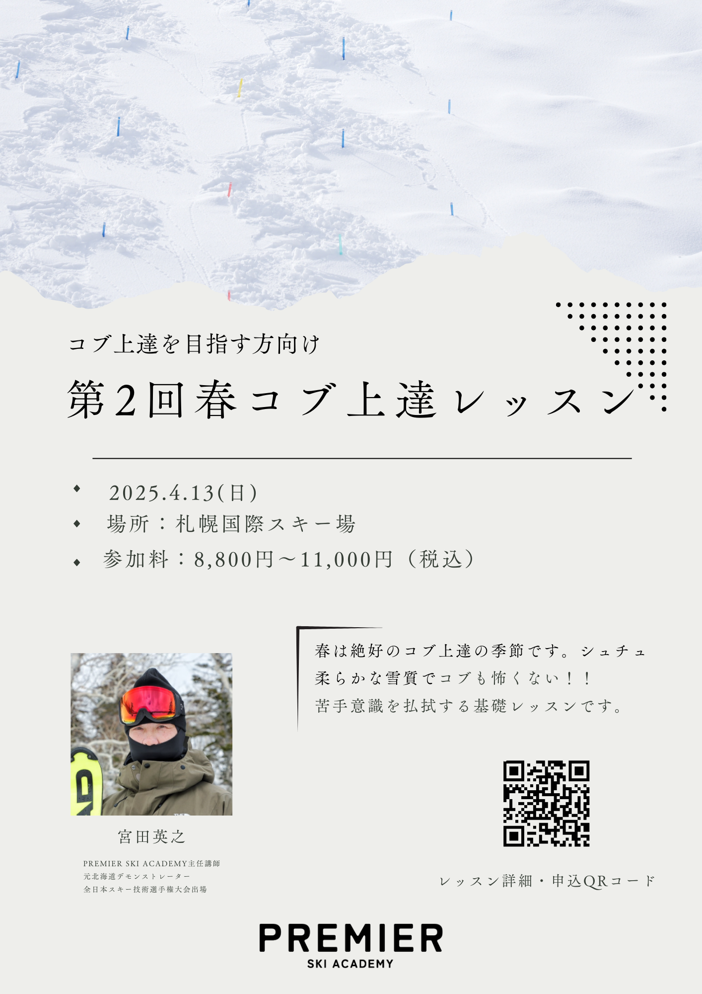 ▷PREMIER SKI ACADEMY 春コブレッスン第2回目を宮田英之が行います。
