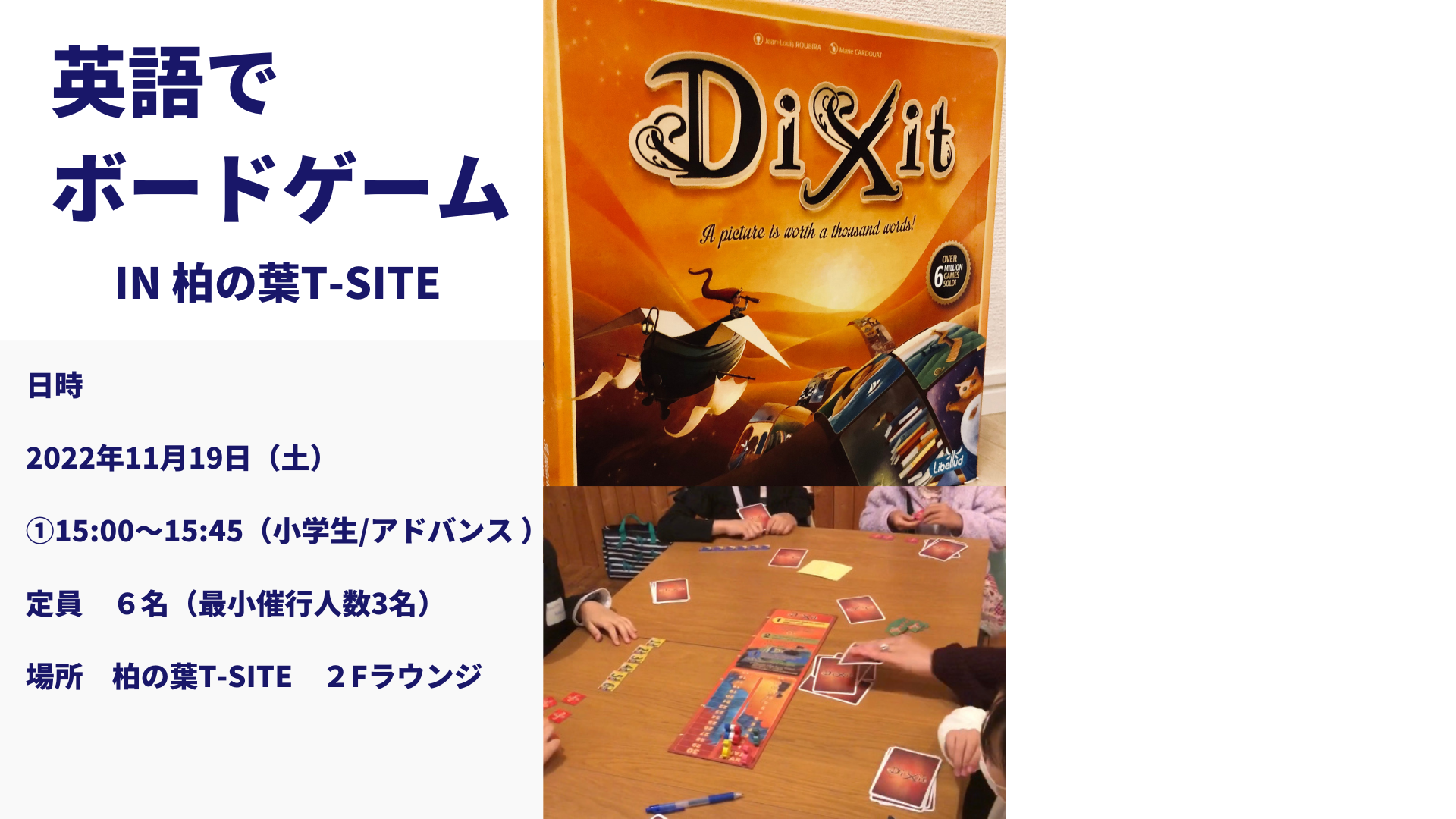 ボードゲームをしながら、参加者や 講師と英語に触れ一緒に楽しもう!