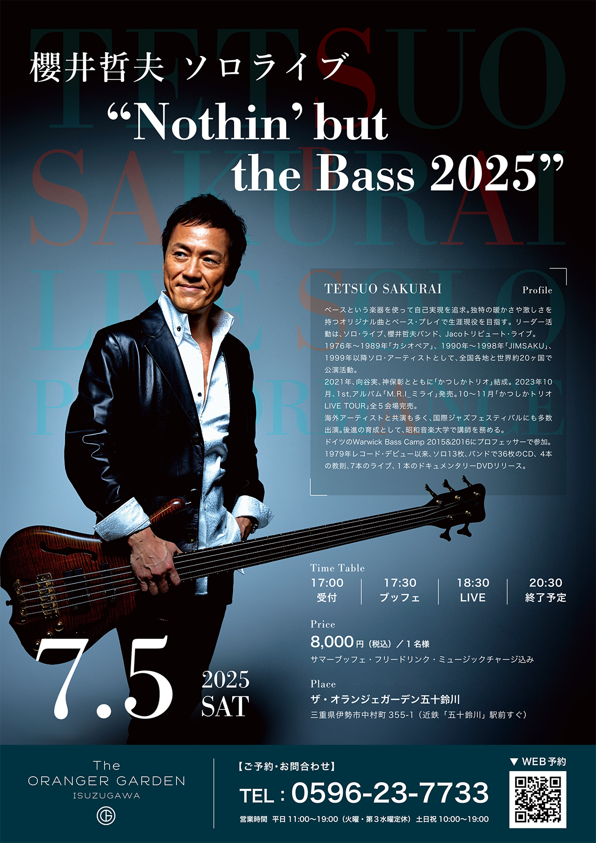 ジャズ/フュージョン・シーンを牽引するスーパーベーシスト、櫻井哲夫のソロライブが伊勢に上陸!
