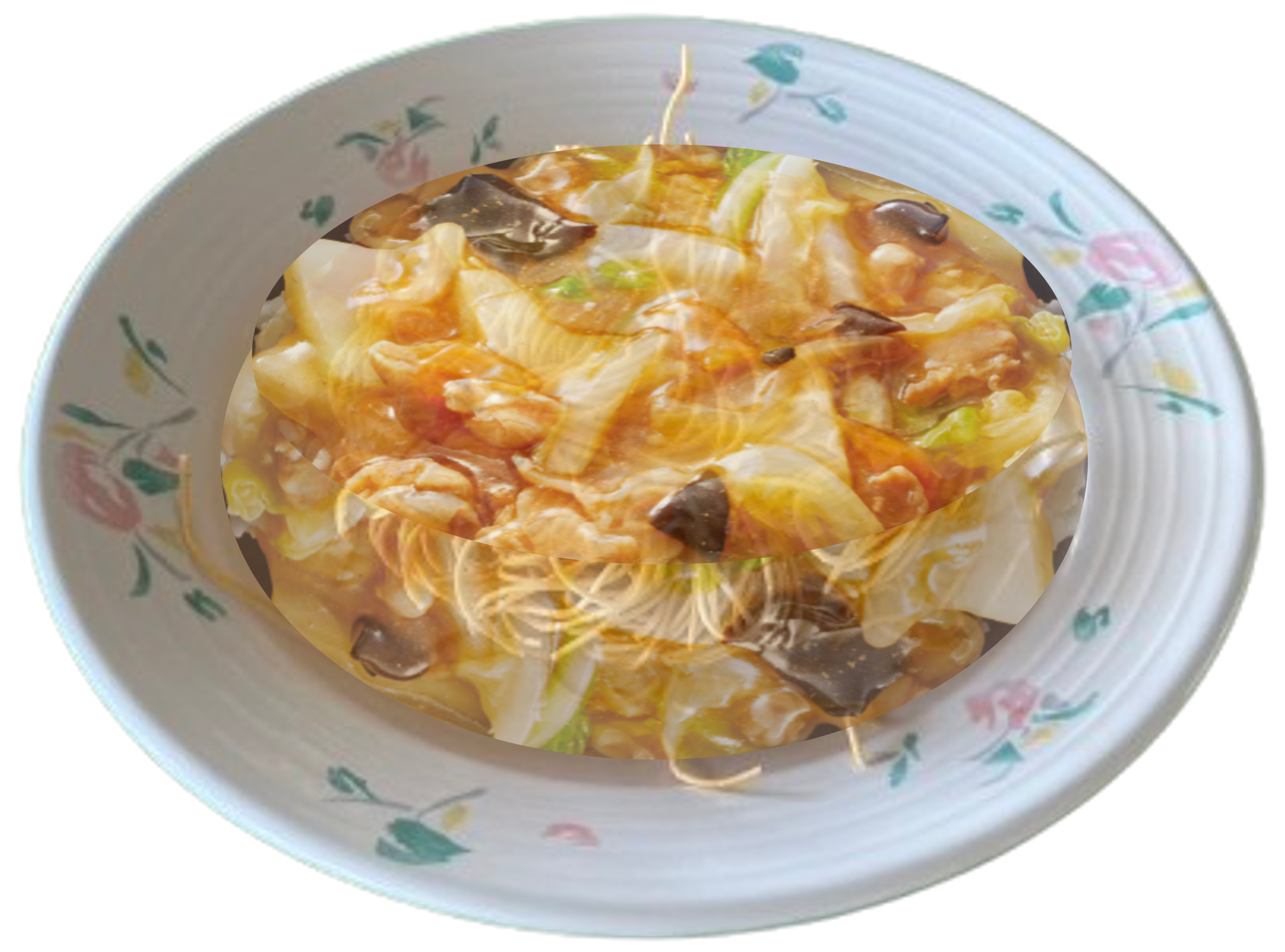 野菜たっぷり餡掛け焼きそば・杏仁豆腐
