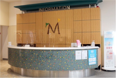 モザイクモール港北1階 インフォメーションは館内のご案内、お待ち合わせや迷子などの呼び出し、ポイントカード入会・各種変更承り、ベビーカー貸し出しなどを行っております。