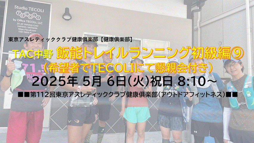 『飯能の里山で楽しくトレイルランニング!午後は希望者でTECOLIにて懇親会』