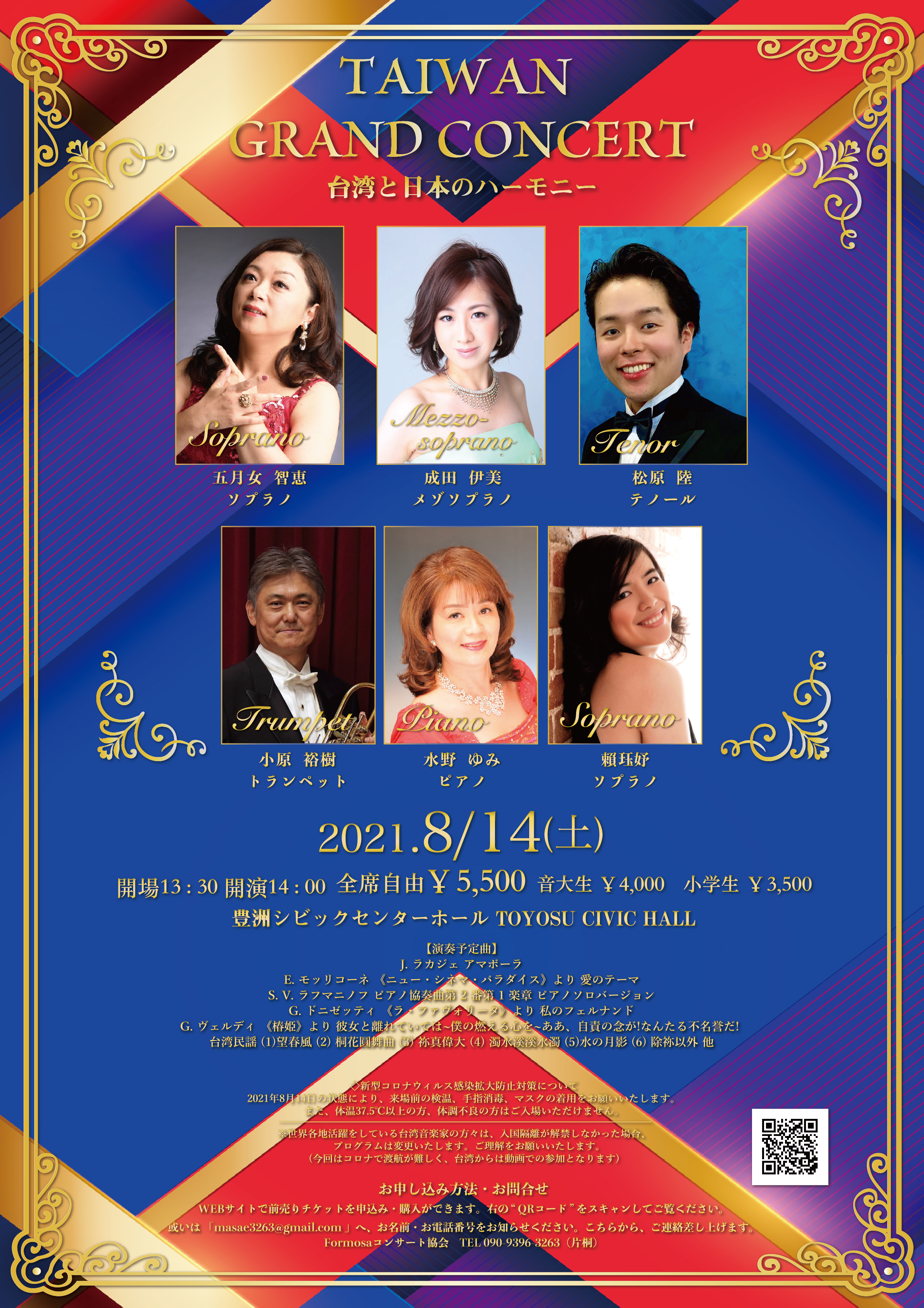 masae3263@gmail.com へ、お名前・電話番号をお知らせください。折り返しご連絡します。Formosaコンサート協会 TEL 090-9396-3263(片桐)