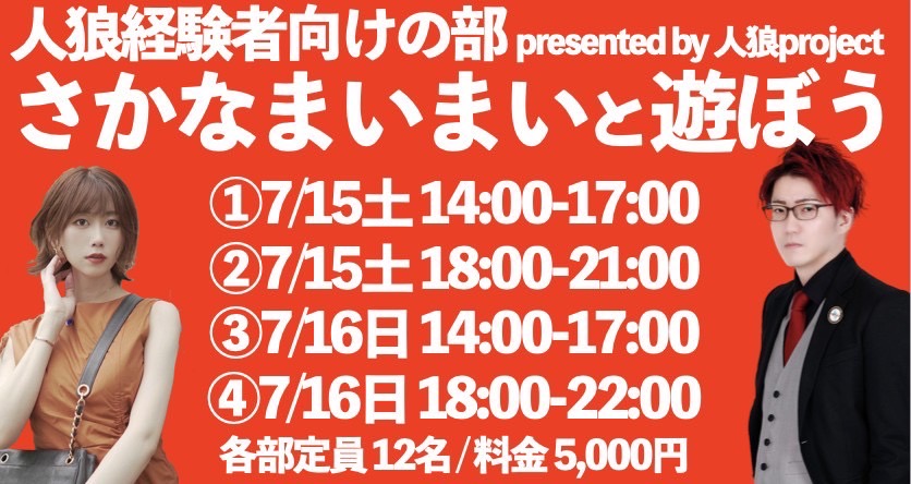 【対面人狼】7/15(土).7/16(日)さかな&まいまいと遊ぼう#3(ゲスト:さかな&まいまい)