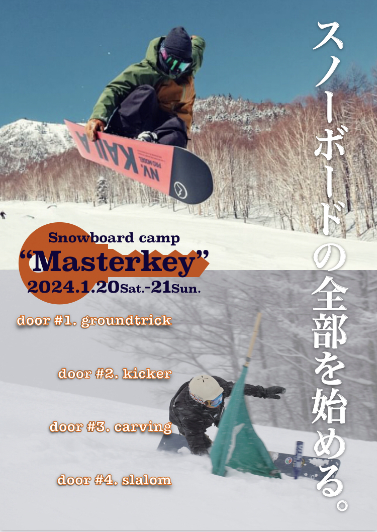 スノーボードの楽しみ方はたくさんありますが、それら全ての扉を開くチャンス(="Masterkey")となるキャンプです!