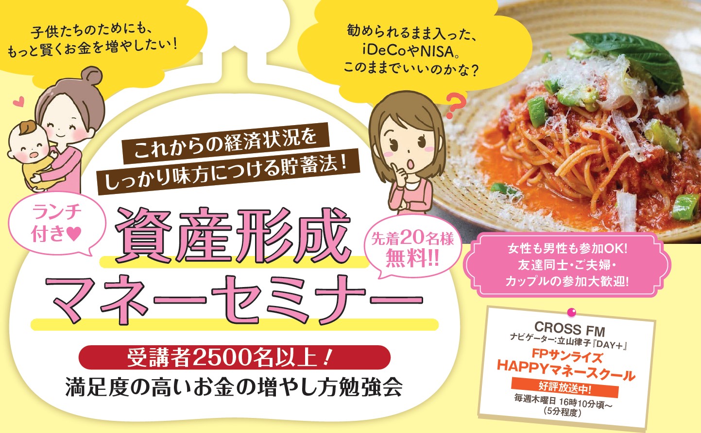 【個人情報の取扱いについて 】本セミナーは、株式会FPサンライズ(以下弊社)により運営されており、個人情報は弊社で管理いたします。ご入力いただきましたお客様の個人情報は弊社セミナー、商品サービスのご案内など弊社の利用目的の範囲内で利用させていただくことがございます。