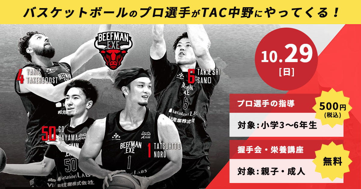 3×3バスケットボールのプロチーム「BEEFMAN.EXE」がTAC中野本店に来る♪