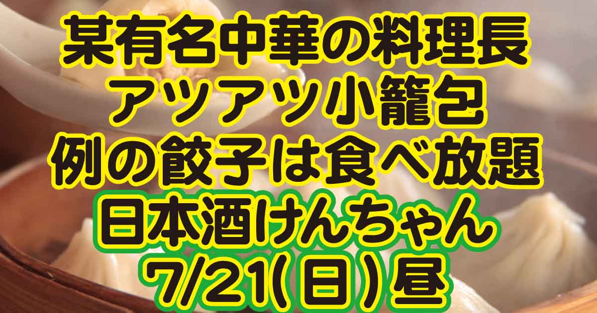 西麻布の某有名高級中華料理店の料理長がけんちゃんで腕をふるいます!芸能人も多数来店すると噂のお店だそうです。 今回も大好評「皮から手作りの肉汁あふれる例の餃子を食べ放題」と「手包み小籠包のアツアツセルフ蒸し」だぁ!