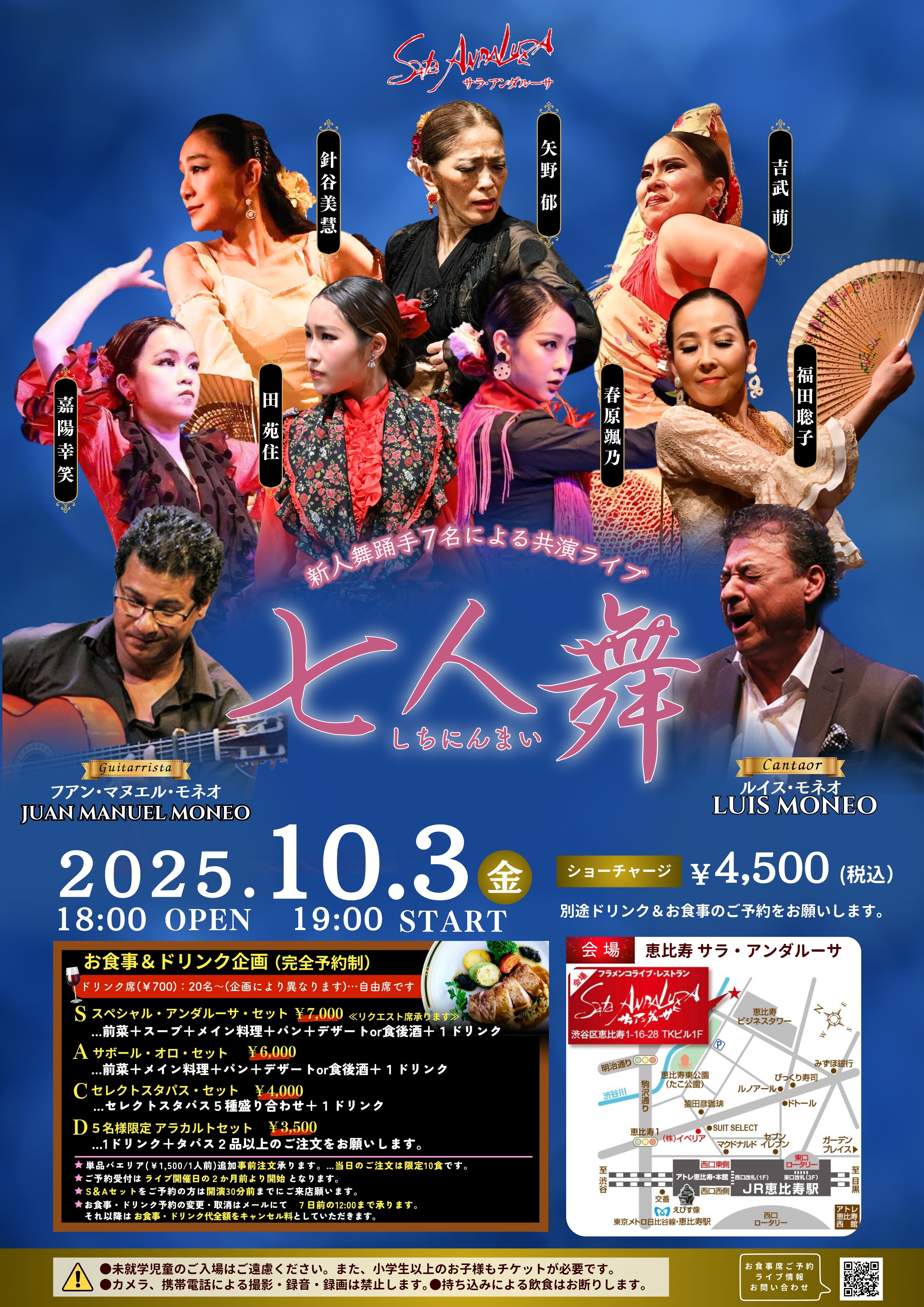 なお、スペイン人共演ライブについては、ご予約完了後のチケットのキャンセルはできかねます。