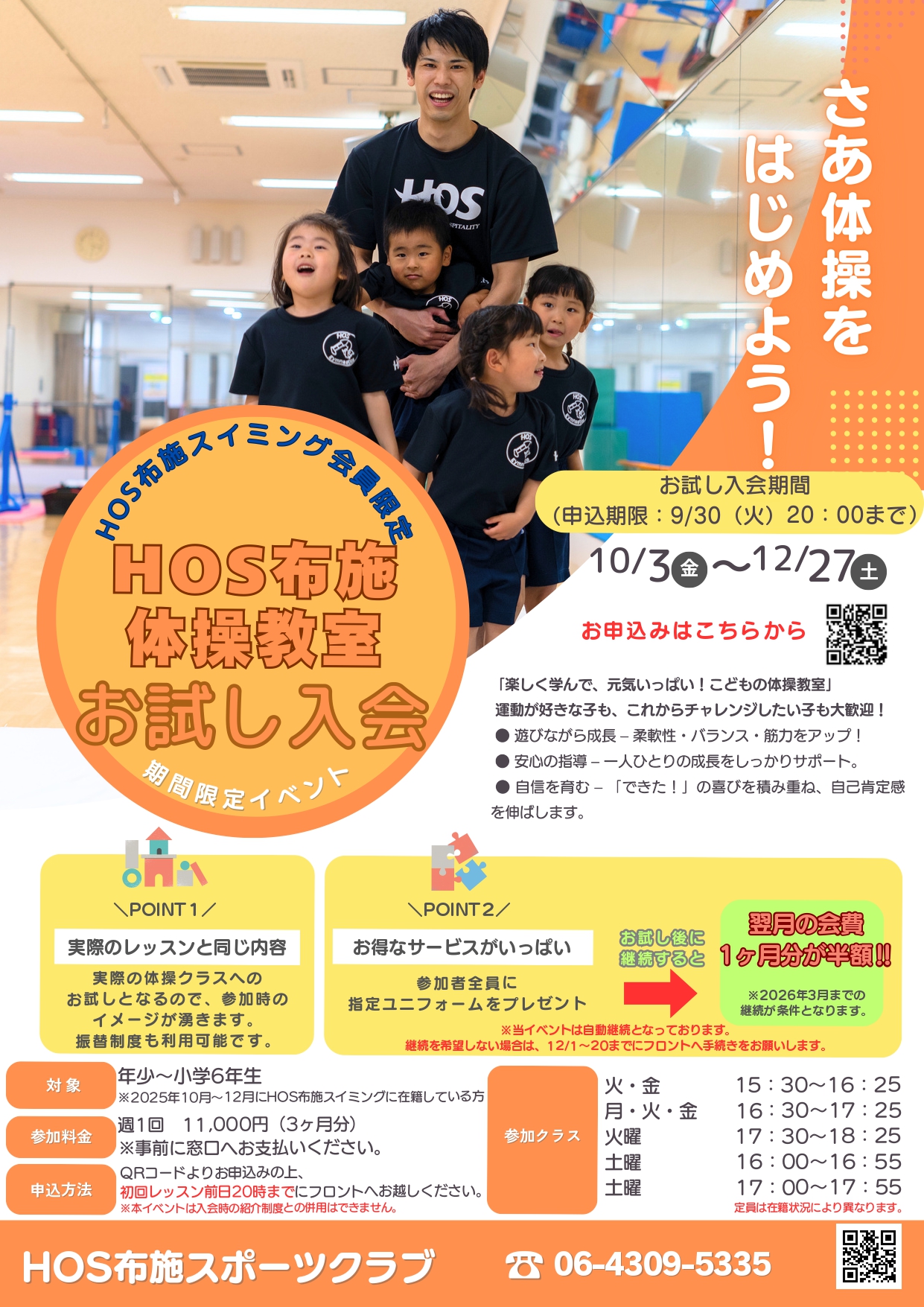 体操教室に3ヶ月間11,000円(税込)でお試し入会いただけます。ユニフォーム上下のプレゼントもございます。