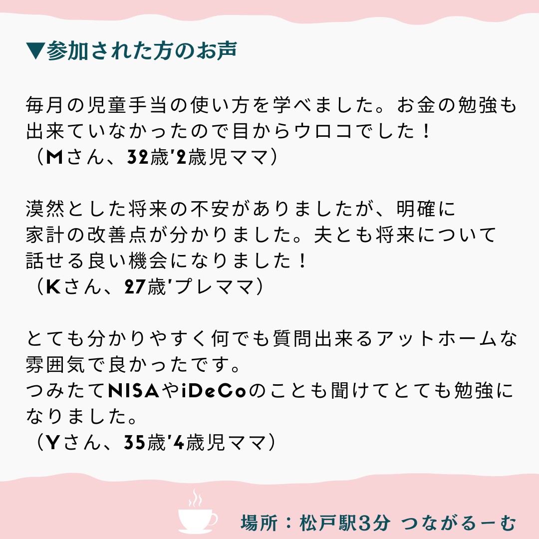 - 具体的な相談事項がある方は、支出が分かるものや運用内容などの資料をご持参頂けますと、スムーズにご案内が可能です。