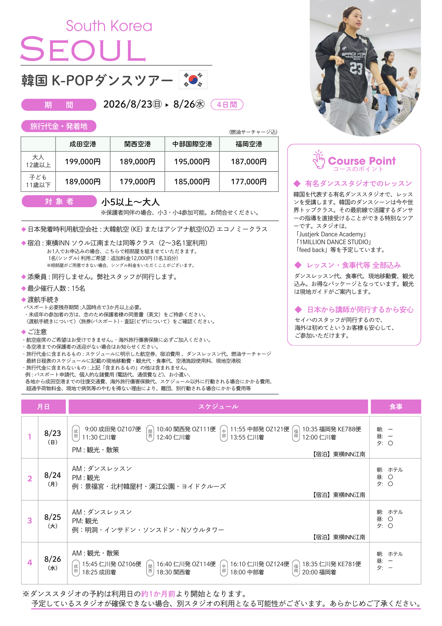 8/23出発 韓国 K-POPダンスツアー