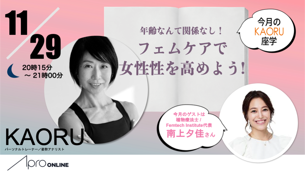 現在、南上さんは独立し『Femtech Institute』を立ち上げ、植物の力で女性のライフスタイルをサポートする活動をスタート。KAORUは、”骨盤底筋エクササイズ”を通して、産前産後やシニアの骨盤の緩みへの理解を深めています。