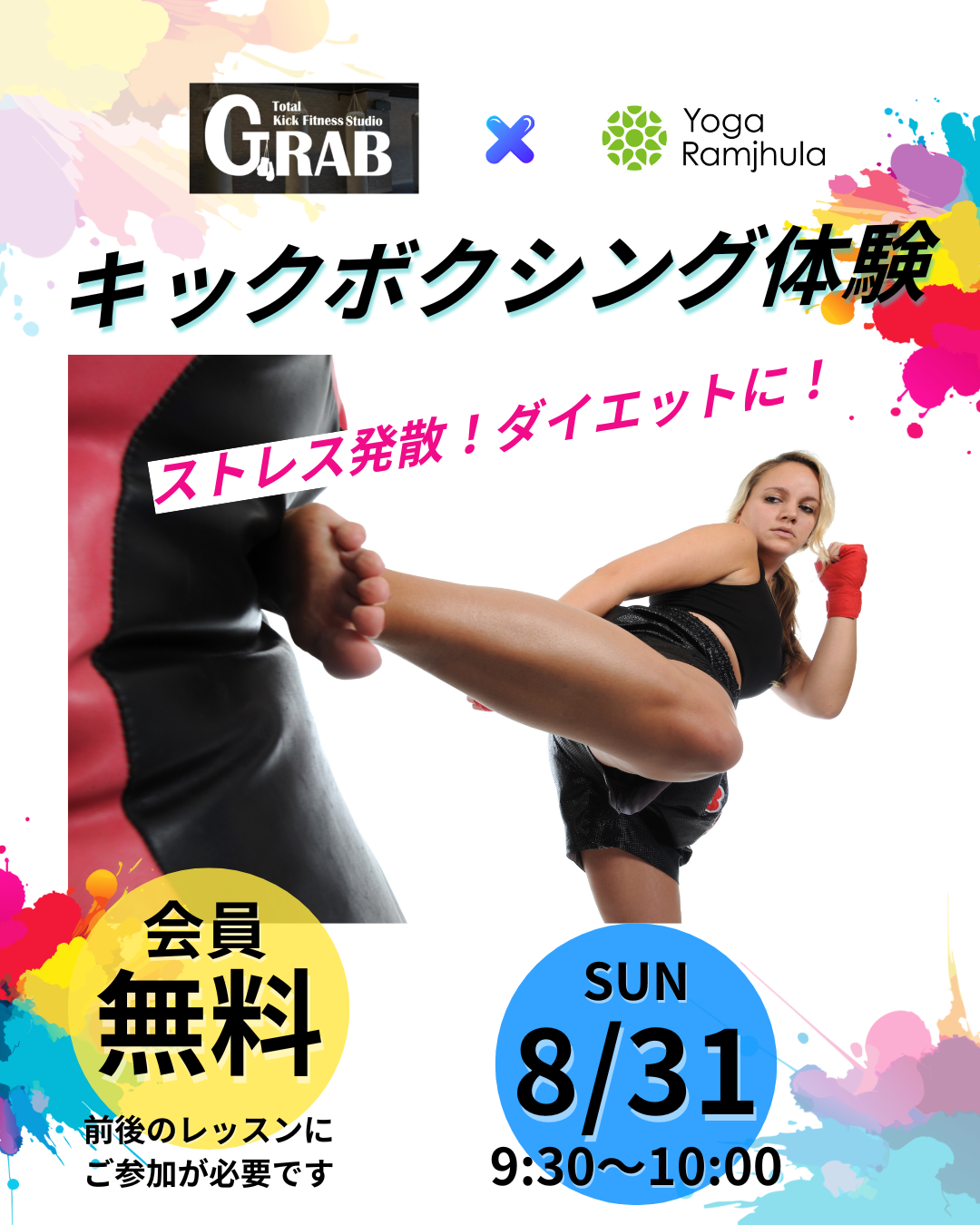 8/31(日) キックボクシング体験 by GRAB アシュタンガ×キックボクシング