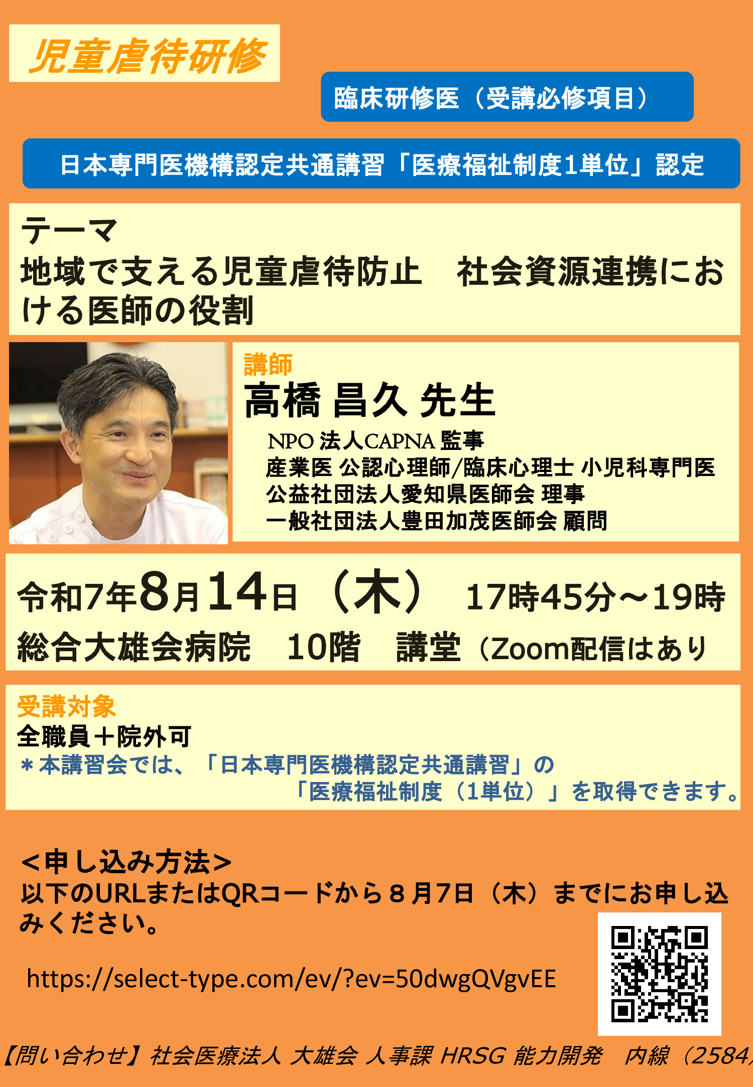 研修当日のご連絡は080-3426-8593、6303(HRS課:野田)までお願いします。