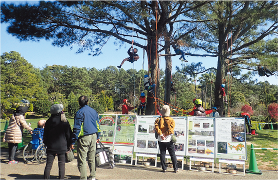 フローランテのテーダ松と、眼下に広がる秋の花々と芝生広場という景観を活かした「ツリークライミング®体験」を開催します。当日はハロウィンイベントなどイベントも多数開催!花に囲まれ、体を動かし、秋の一日を有意義に過ごしませんか?