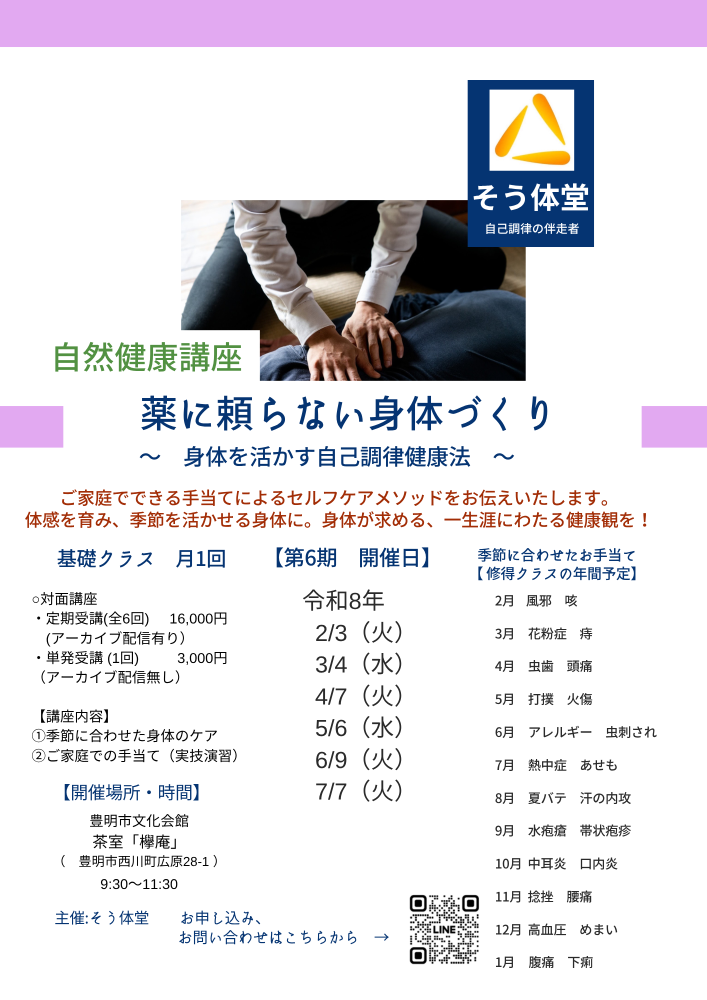 おかげさまで、そう体堂主催の本講座は、皆さまの熱意に支えられて第6期を迎えることができました。誠にありがとうございます。