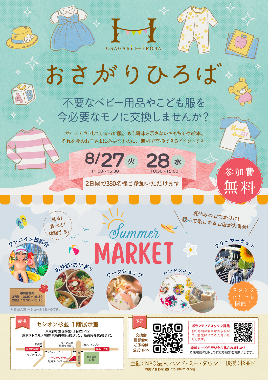 今年の夏休みは、おさがりひろばでボランティア体験!