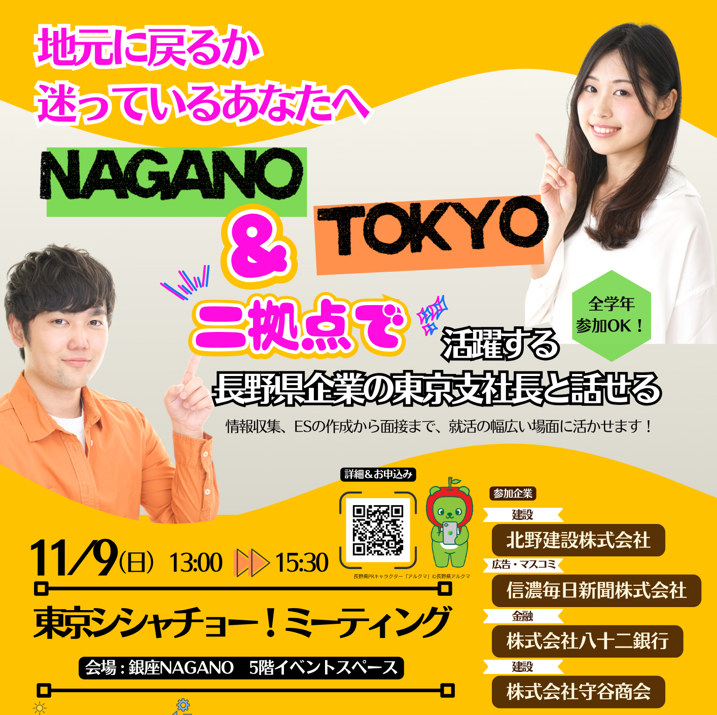 長野県内企業への就職に興味のある学生(全学年対象)長野県内企業への転職に興味のある若手社員(30歳までの方)
