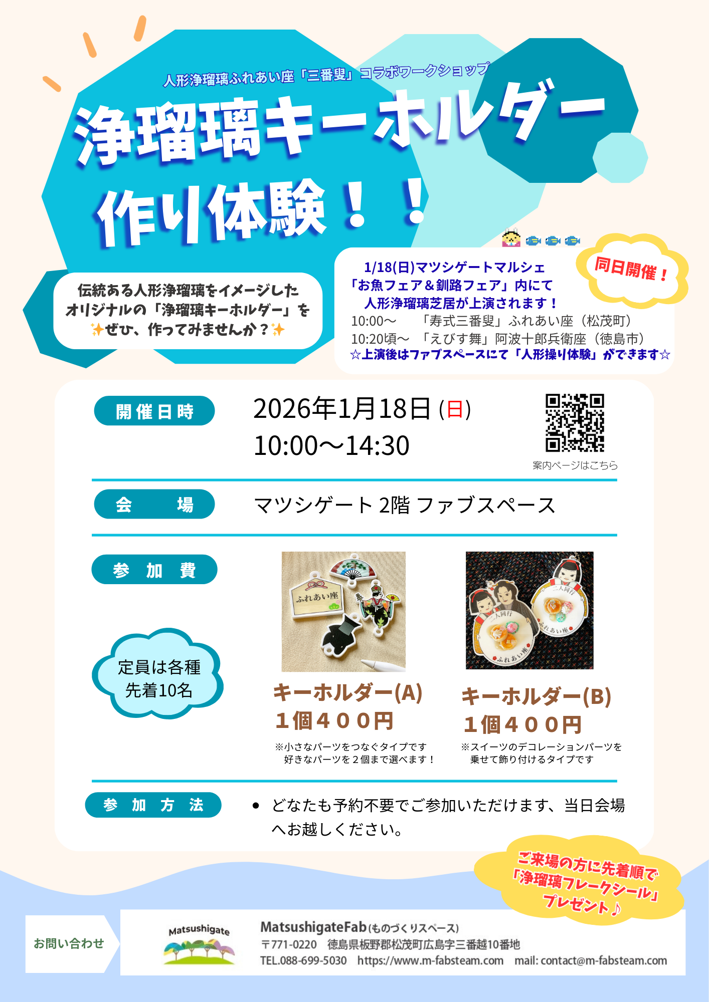 😊ワークショップ内容:「✨浄瑠璃キーホルダー作り🪭」