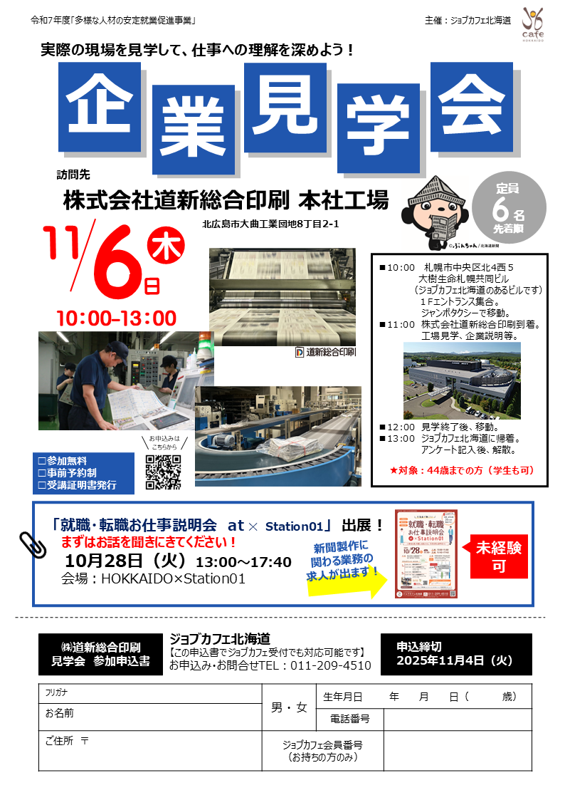 こちらお申込み多数により定員に達したため、お申込みを締め切りました。《11/6 札幌》企業見学会 株式会社道新総合印刷