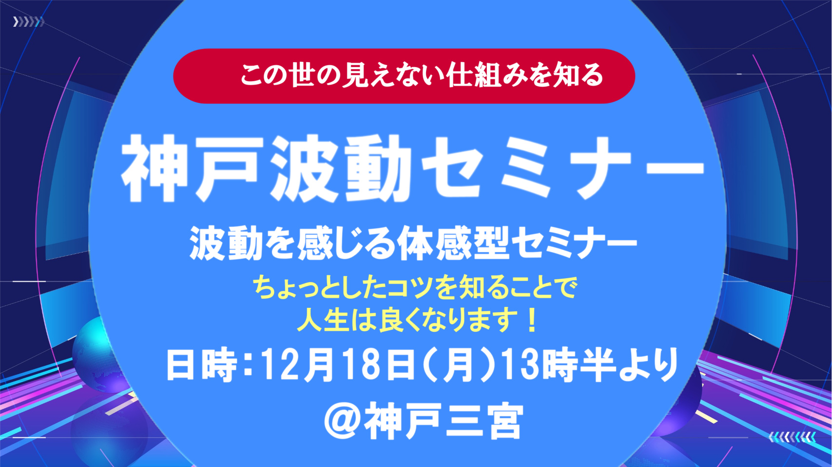 ぜひ、まだ波動という言葉が世の中に知られる前から探求して来られた講師の牛王田さんの、とっても楽しくてわかりやすいこの講座で、この【波動】というものの正体を知って、具体的に人生に上手く活用し、私自身が体感した感動や喜びとミラクルな出来事の数々を引き寄せて、あなたの毎日のお役に立てれば幸いです。