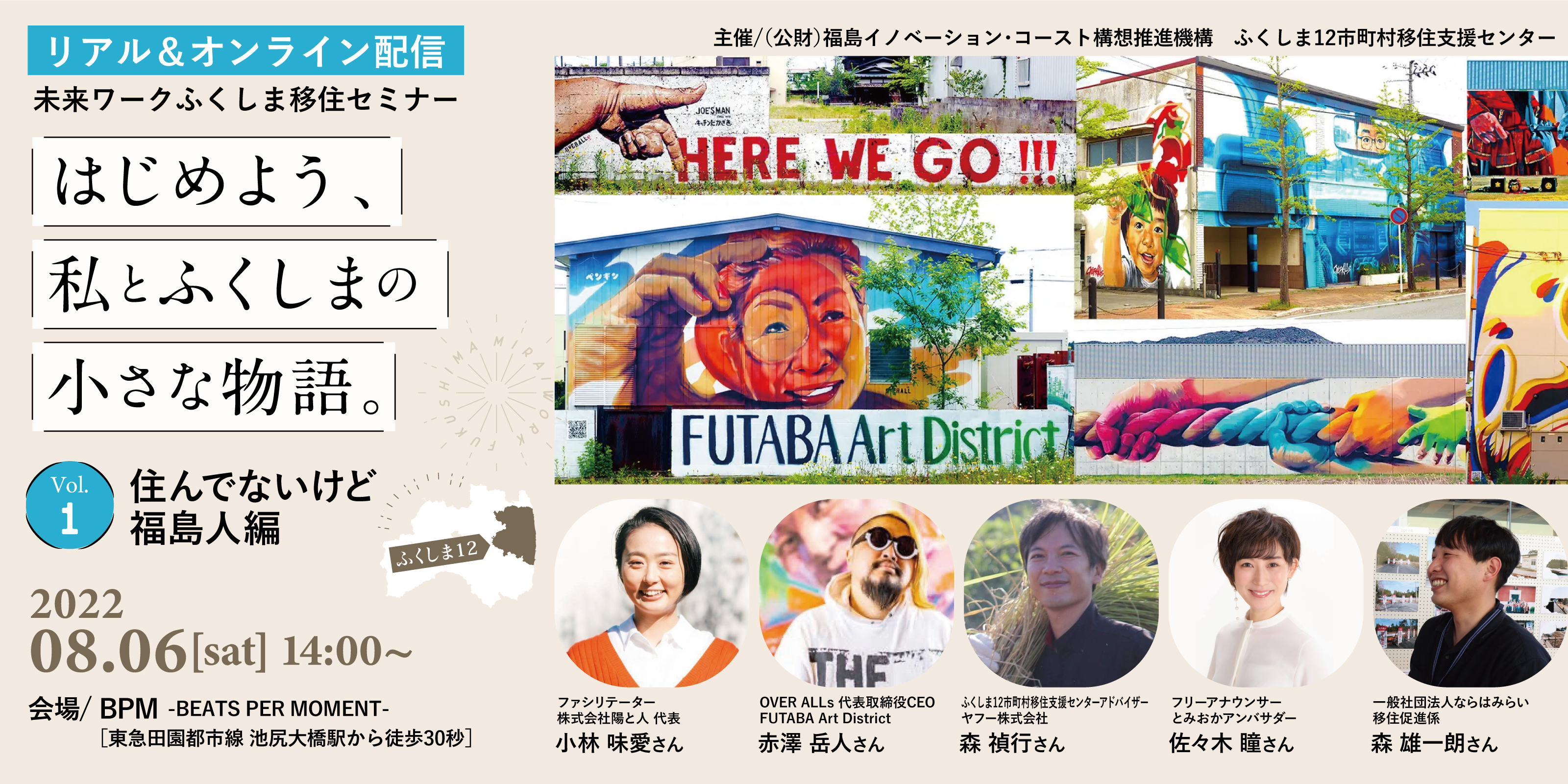 ふくしま12市町村移住支援センター主催の移住セミナー『はじめよう、私とふくしまの小さな物語。』、第1回のテーマは【住んでないけど福島人編】です。