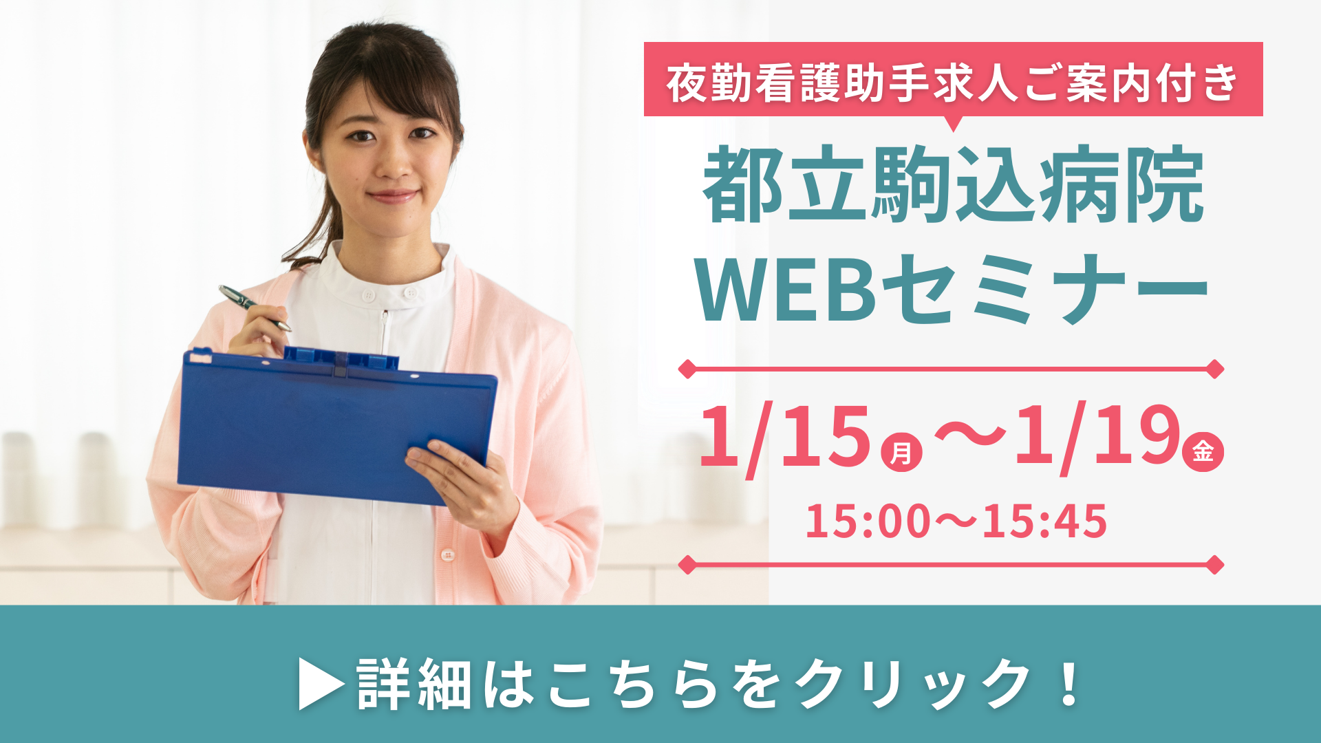 都立駒込病院にて急募の看護助手求人がございますので、こちらのお仕事について、WEBセミナーを開催いたします!