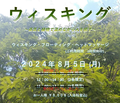 ウィスキングの他にWATSU(ワッツ)やシンギングボウル等を組み合わせた施術を行う。