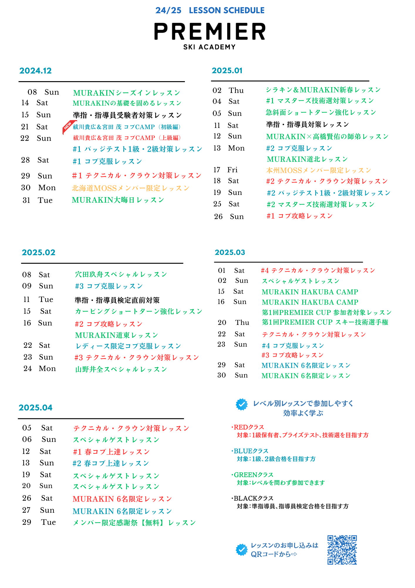 ■悪天候により担当講師の判断で雪上講習を途中で中止し、屋内のミーティング等に変更する場合があります。