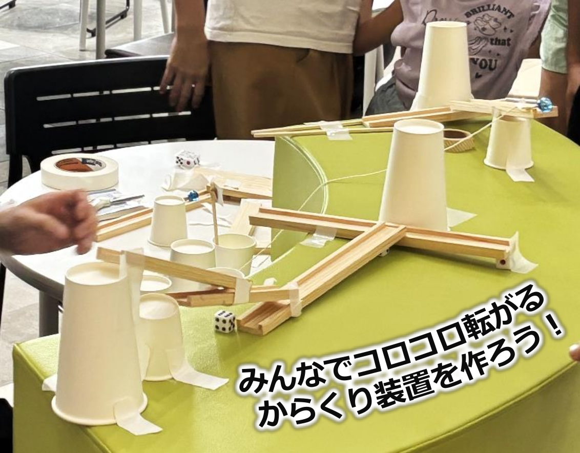 身近な素材を使って、みんなで“コロコロ転がるからくり装置”づくりに挑戦します。失敗も発見も楽しみながら、論理的思考力や創造力を育む体験型ワークショップです。
